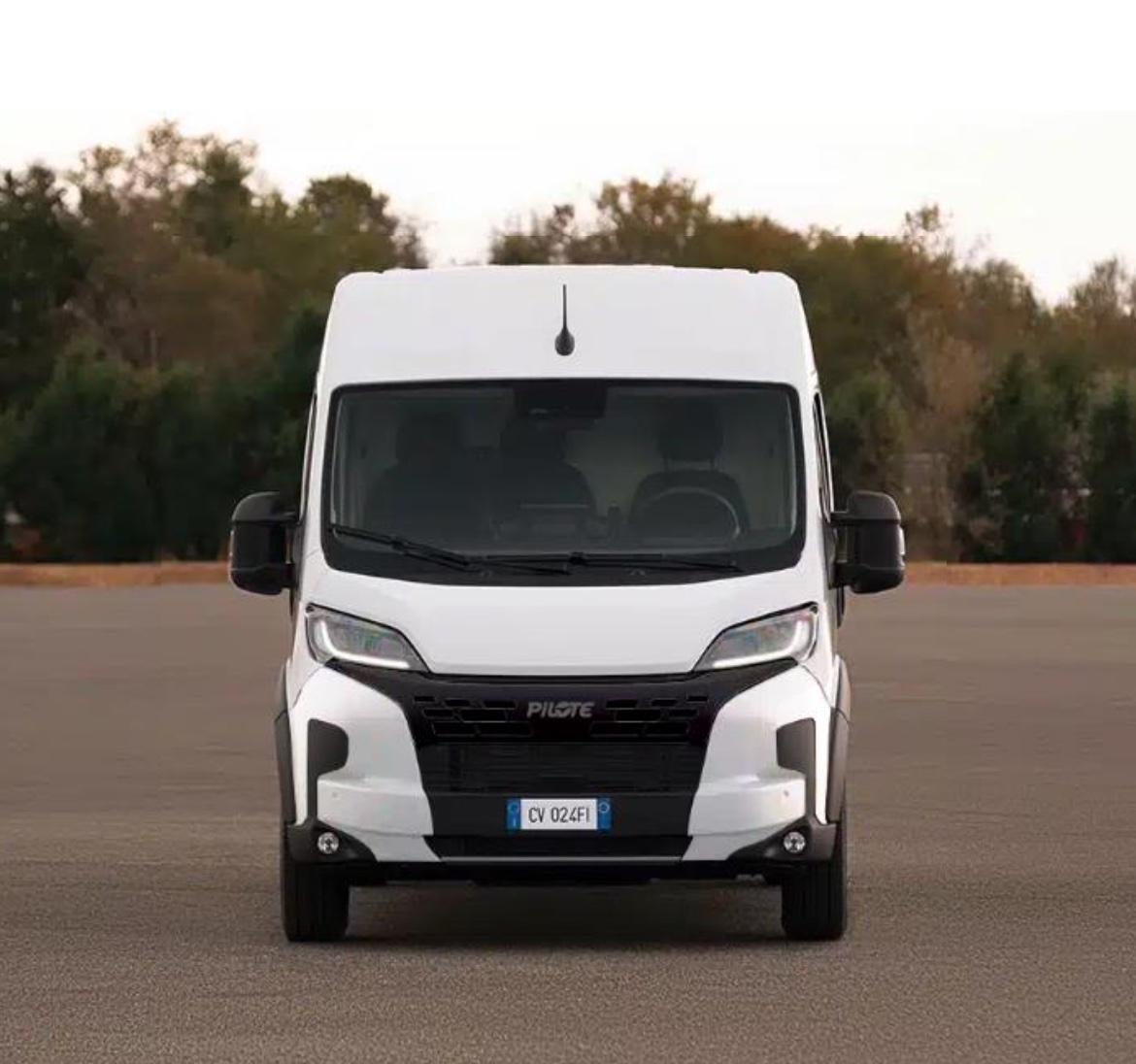 Marque généraliste, Pilote associe les fourgons à la refonte générale de ses camping-cars. Identifié sous le nom de Pyla, ce nouveau style marie les courbes et les formes plus géométriques et ajoute des éléments graphiques (panneau en claire-voie côté cuisine) et contrastés (encadrement intérieur de la fenêtre).
