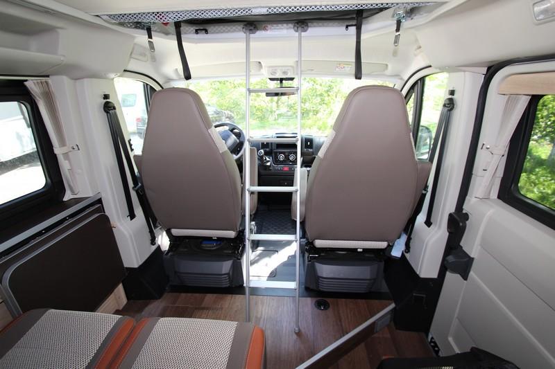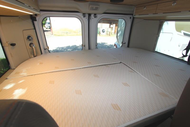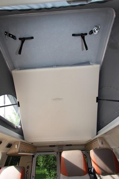 • De série : toit relevable et lit de mezzanine « King size » (200 x 150cm), matelas en mousse à zones différenciées, systèmes de sommier à supports « frolis », climatisation, occultants etc.