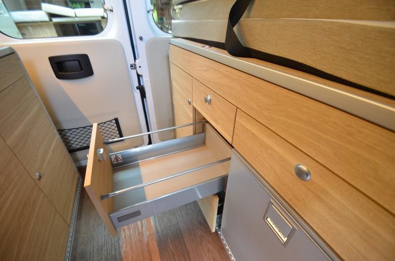 Le Sydney est un modèle au format de monospace (4,96m) et ultra-modulable. Il intègre en option jusqu’à deux places CG supplémentaires, un lit additionnel (soit 5 places route et nuit au total) ou encore un meuble arrière extractible.