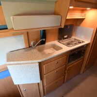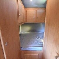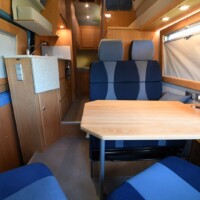- Couchage : lit permanent arrière (195 x 146 cm) + lit escamotable sous pavillon de (210 x 150 cm) + lit de dînette en option