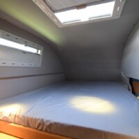 Autre spécificité du Rondo XL : il propose de série un deuxième couchage double, escamotable sous pavillon. Se déployant dans la longueur du véhicule avec une assistance par vérins, ce lit affiche là encore de très belles dimensions (210 x 150 cm), tout en offrant une hauteur sous plafond appréciable (76 cm). Au total, on pourra porter à cinq le nombre de places nuit, en convertissant la dînette en couchage simple. Mais les places carte grise resteront, elles, bloquées, à quatre…