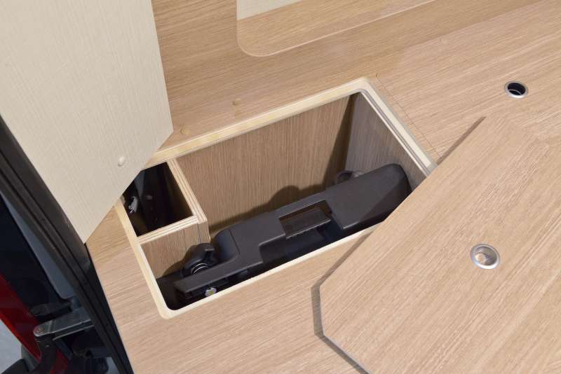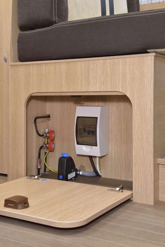 RoadcarSi l’offre s’annonce assez simple, pas ou peu d’options, en dehors de deux packs d’équipement quasi incontournables (packs châssis et confort), la conception sérieuse et astucieuse de Pössl est au rendez-vous. Plusieurs détails retiennent l’attention, comme la centralisation sous la banquette du disjoncteur électrique, des robinets d’arrêt du gaz et de vanne de sécurité automatique du chauffage Truma. Bien vu aussi l’emplacement spécifique pour le kit de crevaison Fiat ou le meuble colonne comprenant la penderie et un discret compartiment TV (Roadcar 600 et 640).