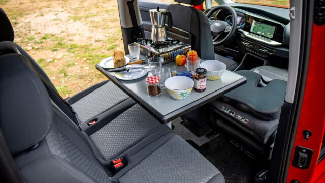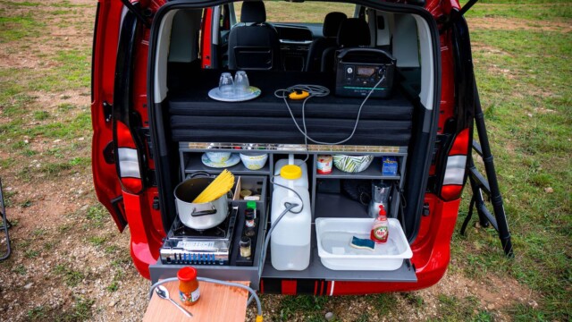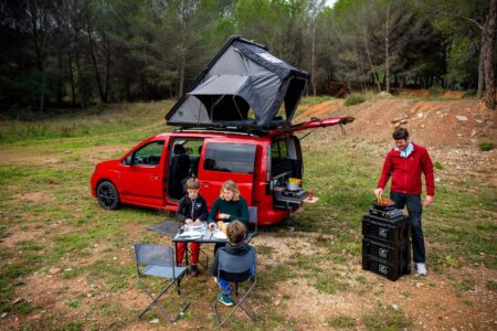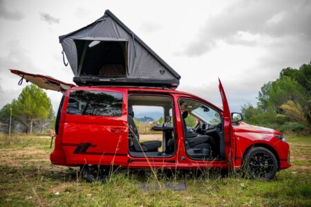 En termes d’aménagement, l’Aventourer Odyssée comporte 3 modules de série : la malle de voyage « A-Box » incluant réchaud au gaz, évier, réserves d’eau propre/eaux usées de 13L, douchette électrique et rangements ; le lit double (200 x 114 cm) avec matelas grand confort pliable et enfin ; la table (90 x 60 cm) utilisable à l’intérieur comme à l’extérieur. Sont renvoyés au catalogue d’options la tente de toit Cumaru de Vickywood, la glacière à compression 40L, le chauffage stationnaire, la batterie auxiliaire, la décoration et le coloris de carrosserie ou encore les jantes alu Cupra. Le prix de départ de l’Aventourer Odyssée est annoncé à 39 090€, frais de mise à la route (carte grise + malus écologique) et kit E85 compris.