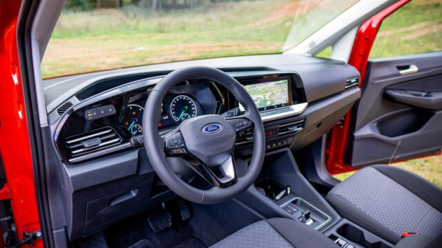 Le Ford Tourneo Connect, troisième génération du nom, partage depuis 2022 la même plateforme technique que le Volkswagen Caddy. Dans la configuration retenue ici, il se présente en version Kombi longue (4,86m), avec 5 places route, motorisation essence Ecoboost 114 ch et finition de base « Titanium ».