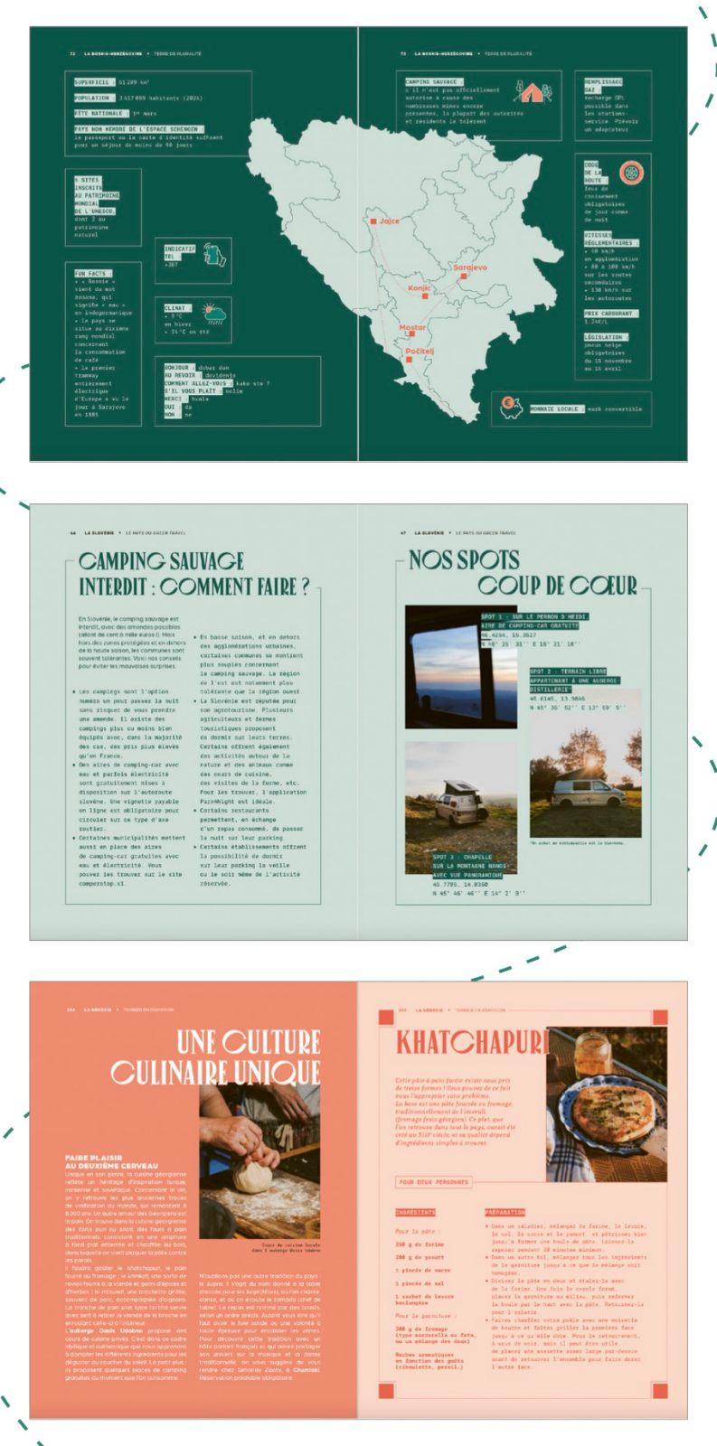 Le livre vous fera explorer des paysages montagneux, des bords de mer apaisants et des villes historiques qui ont marqué leur parcours. Au-delà des itinéraires qui font rêver, nos deux vanlifers vous partagerons leurs multiples expériences : visite d’un refuge d’ours en Croatie, initation à la spéléologie en Slovénie, pêche de nuit au harpon au Monténégro. Sans oublier des conseils pratiques sur la vie en van, et des savoureuses recettes de spécialités locales ! L’album est illustré par de magnifiques photos prises tout au long du voyage.