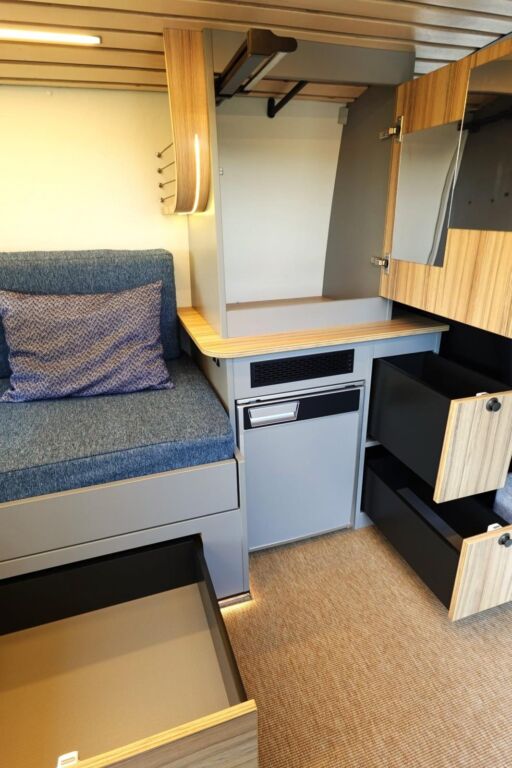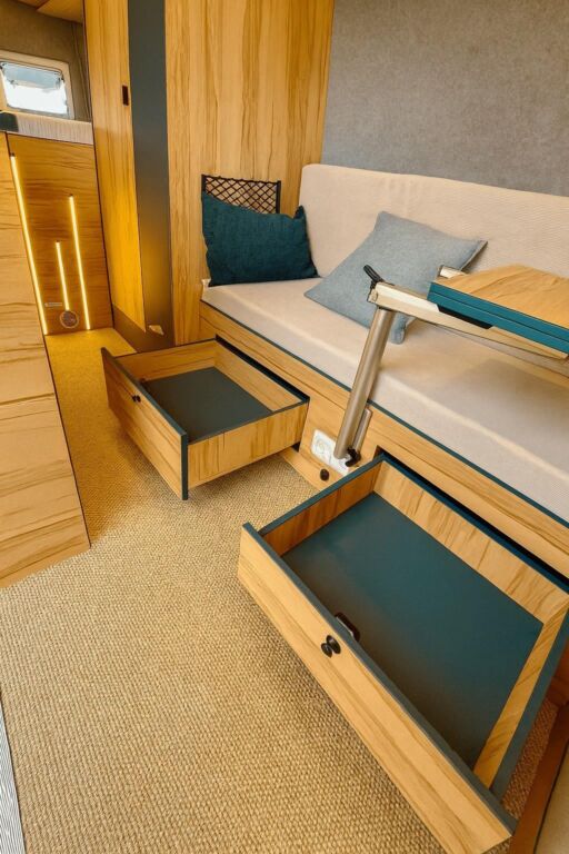 Depuis sa création en octobre 2025, Inti Van a produit deux élégants aménagements sur-mesure sur Volkswagen : l’un pour fourgon Crafter, l’autre pour van T6. L’atelier réfléchit aujourd’hui à développer une courte gamme de deux fourgons au plan standardisé. « L’objectif est de réduire un peu les coûts et d’automatiser la production », défendent les jeunes chefs d’entreprise. Pour autant, les possibilités de personnalisation – du mobilier ou de l’équipement – resteront nombreuses. Sur base VW Crafter ou Mercedes Sprinter, deux aménagements sont à l’étude : l’un pour deux personnes, l’autre pour quatre.