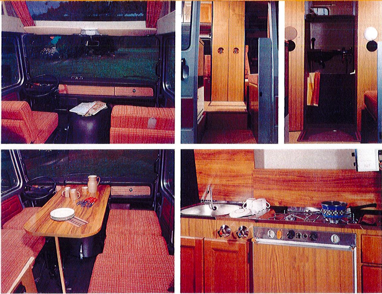 Malheureusement, le dispositif de la douche dans un espace déjà encombré par le wc et le lavabo s’avère très peu pratique et le cloisonnement mobile peu étanche… Mais l’intention y est, ce qui n’est pas banal loin s’en faut dans un fourgon des années 80.