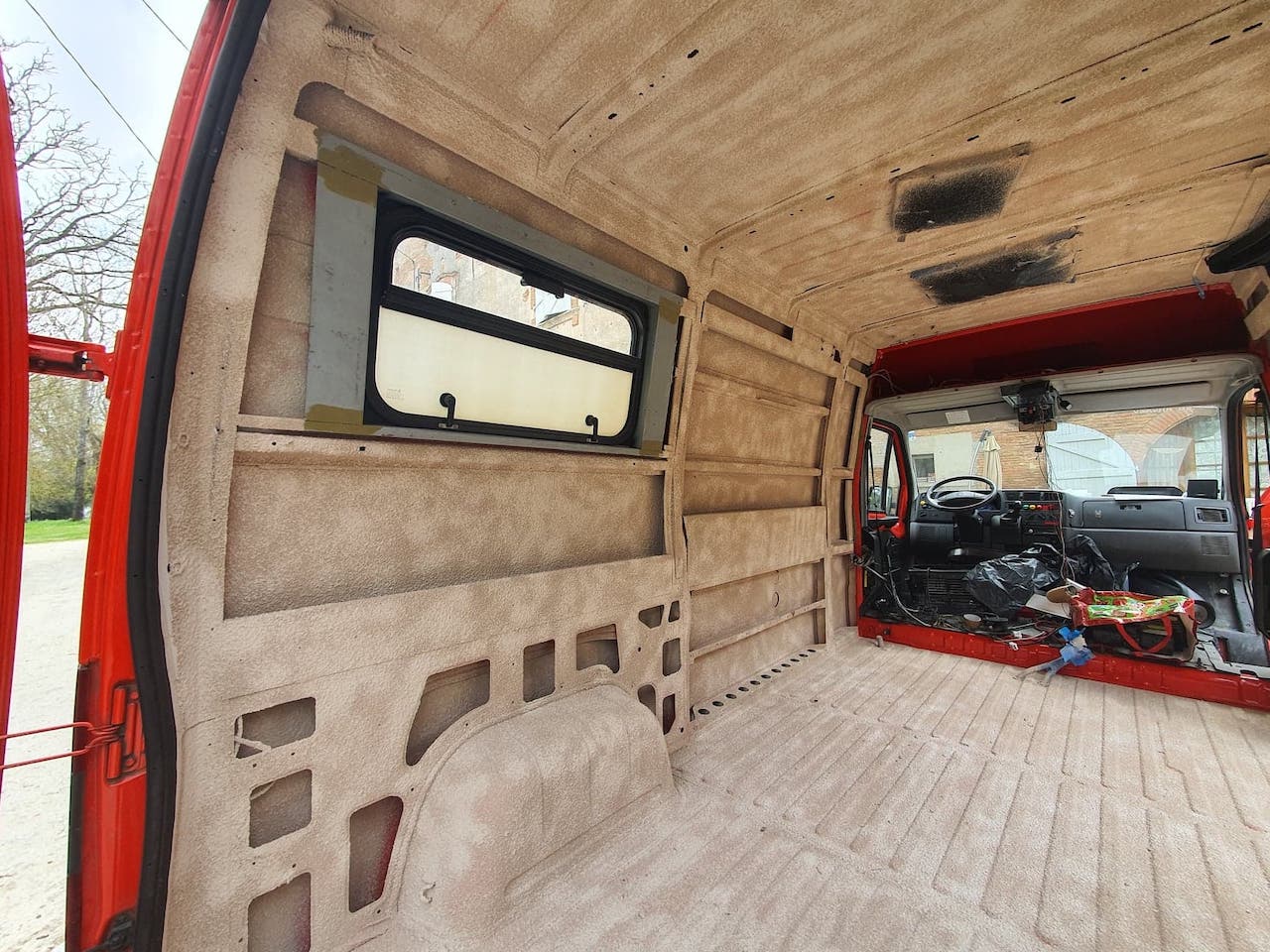 « Avec le recul, je dirais que cette technique d’application n’a rien de sorcier, mais elle demande de l’organisation et une bonne préparation en amont. De mon côté, je n’ai pas poncé la peinture intérieure du fourgon, pour ne pas ôter le vernis protecteur, mais j’ai réalisé un bon nettoyage et un dégraissage complet des parois, d’abord avec de l’acétone puis rapidement avec du vinaigre blanc dilué moins agressif. Il faut ensuite bien protéger l’ensemble des équipements, fenêtres et mécanismes de porte, avec du scotch. C’est important, car toute projection est irréversible.