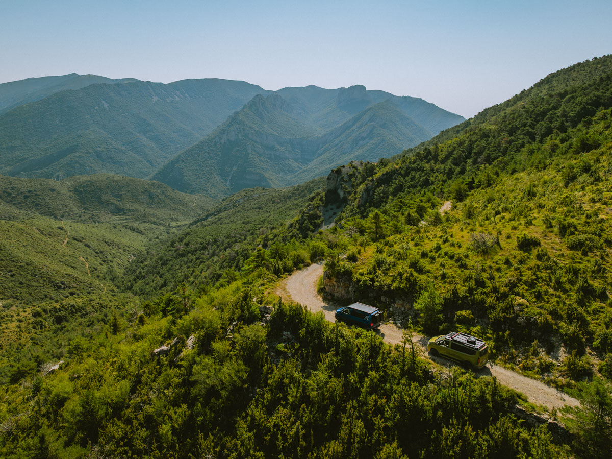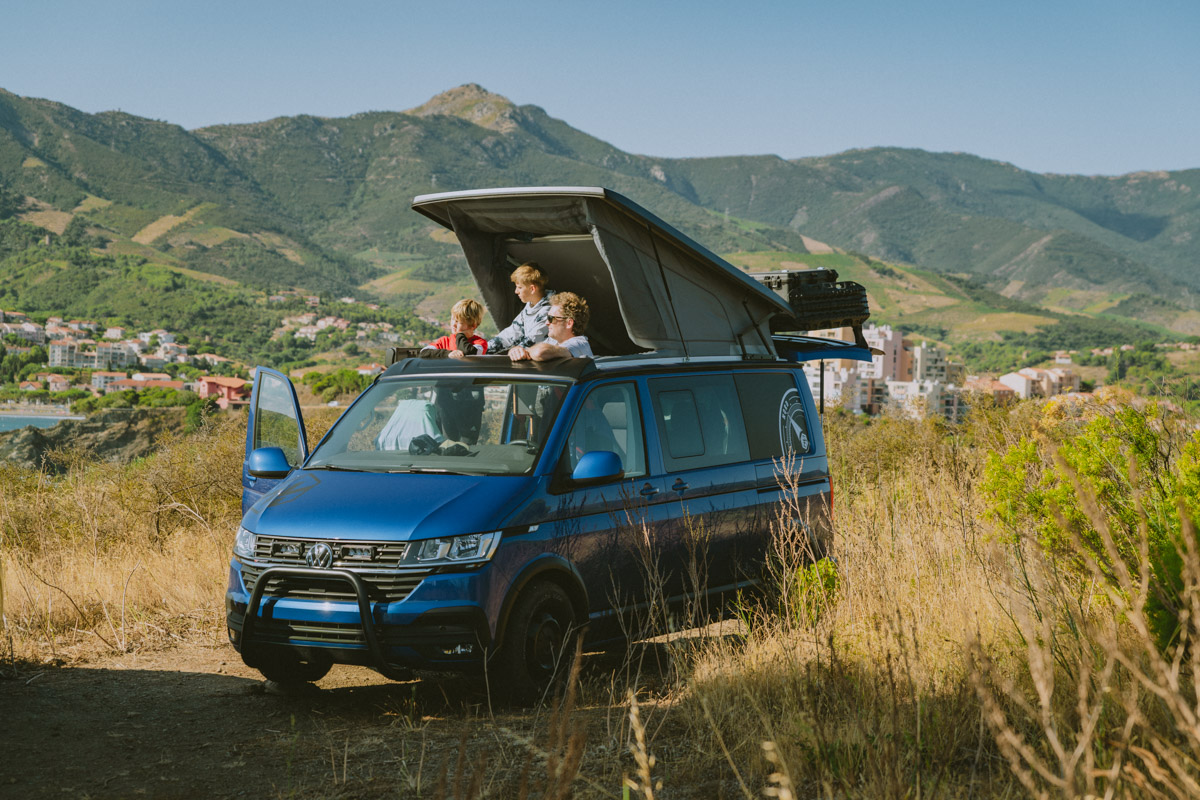 Un dernier coup d’oeil sur la Méditerranée avant d’entamer la grande traversée des Pyrénées. Le Transporter T6.1 était également du voyage, en motorisation 150 et transmission intégrale 4Motion + blocage de différentiel. Il bénéficie de vraies compétences off road, sans aller trop loin dans la préparation. Parmi ses atouts, une suspension pneumatique VB Air, des pneus BF Goodrich Trail Terrain et un porte vélo utilisé pour le transport des caisses Peli, pelle et plaques. (photo @Alexbild.com)
