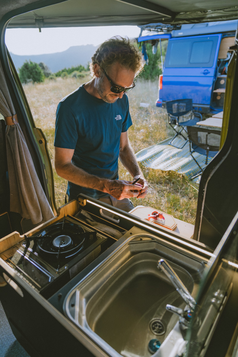 Pour mener à bien cette expédition dans les Pyrénées, le nouveau Transporter a bénéficié d’une préparation « off road » conduite par Van Mania. Cette compétence supplémentaire, l’aménageur la développe de plus en plus et témoigne du parcours hors norme de son fondateur, Nicolas Desmazure, véritable touche-à-tout qui a grandi sur un bateau école et aménagé ses propres vans pour des voyages au long cours.