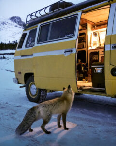 Ben (Benjamin) voyage à temps plein depuis deux ans à bord de ses deux Volkswagen T3, l’un en Amérique du nord et l’autre en Europe. Il s’apprête à reprendre son voyage qui l’a déjà conduit de l’Alaska au Mexique avant d’être mis en pause par l’épidémie du Covid. Vous pouvez prolonger l’aventure et le suivre sur plusieurs supports :